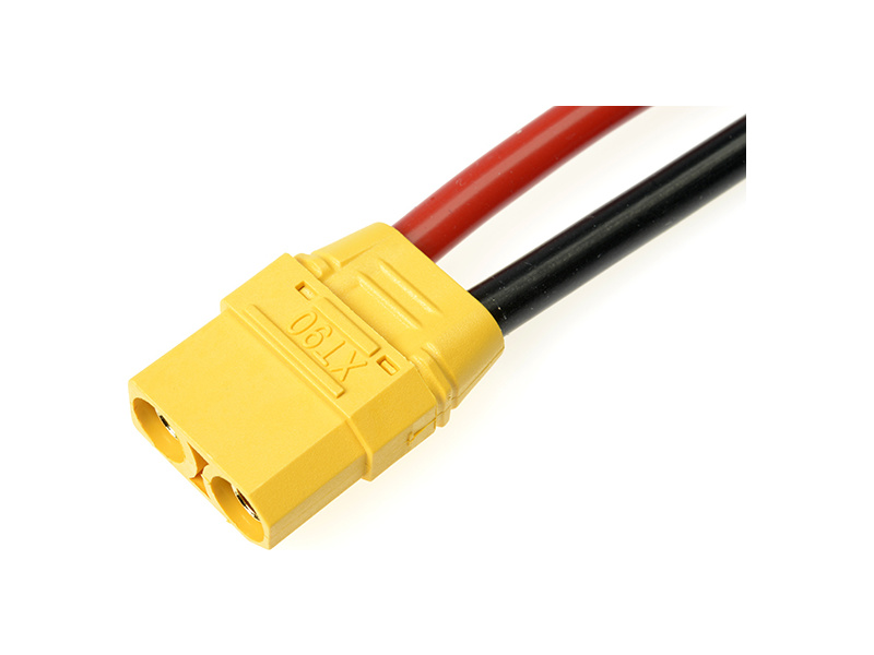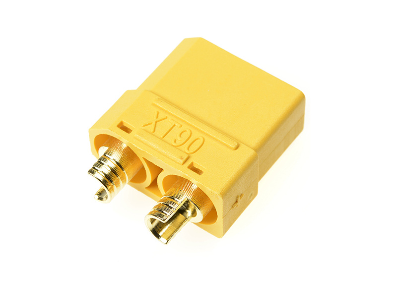 Zlacený konektor XT-90H samice s plastovými kryty. Balení obsahuje 2 ks.