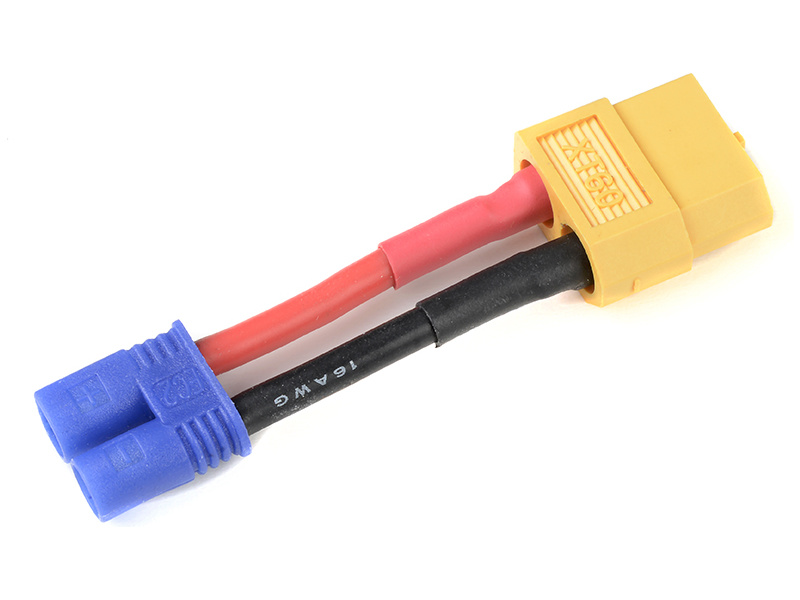 Konverzní kabel s konektory EC2 samec - XT-60 samice, kabel 14AWG.