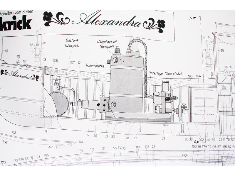 Stavebnice modelu člunu na parní pohon Alexandra v měřítku 1:10. Tento typ lodí byl využíván na počátku minulého století. Alexandra je ideální model pro vstup do světa páry. Konstrukci tvoří laserem řezané dřevěné díly a hotový ABS trup. Stavba nevyžaduje žádné zvláštní znalosti. Stavebnice je bez parního stroje.