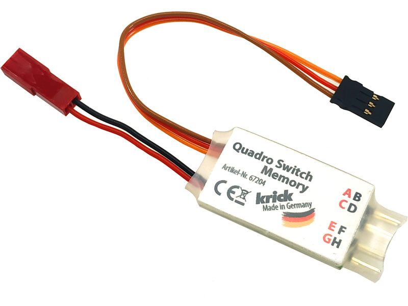 Krick elektronický čtyřnásobný spínač slouží pro zapínání a vypínání doplňkových zařízení na lodích, jako např. osvětlení, vodní čerpadla, jeřáby, atd. Zařízení je napájeno ze samostatného zdroje. Spínač se ovládá pouze jedním kanálem s polohami -100%, 0% a +100%.