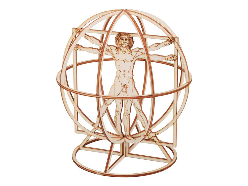 Krick Leonardo člověk kit, laserem vyřezané dřevěné díly stavebnice slavného zobrazení člověka Leonardem da Vinci.