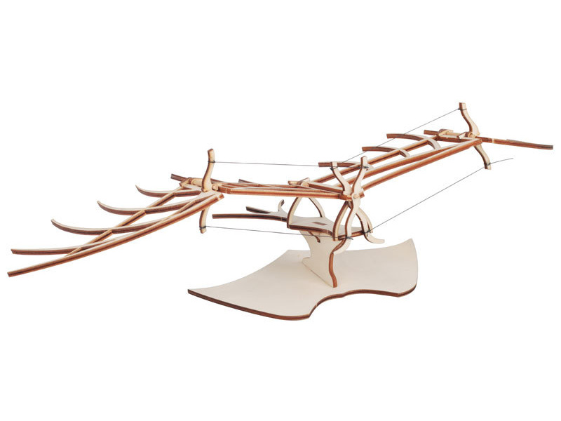 Krick Leonardo létající stroj kit, laserem vyřezané dřevěné díly stavebnice slavného létacího stroje z dílny slavného Leonarda da Vinci.