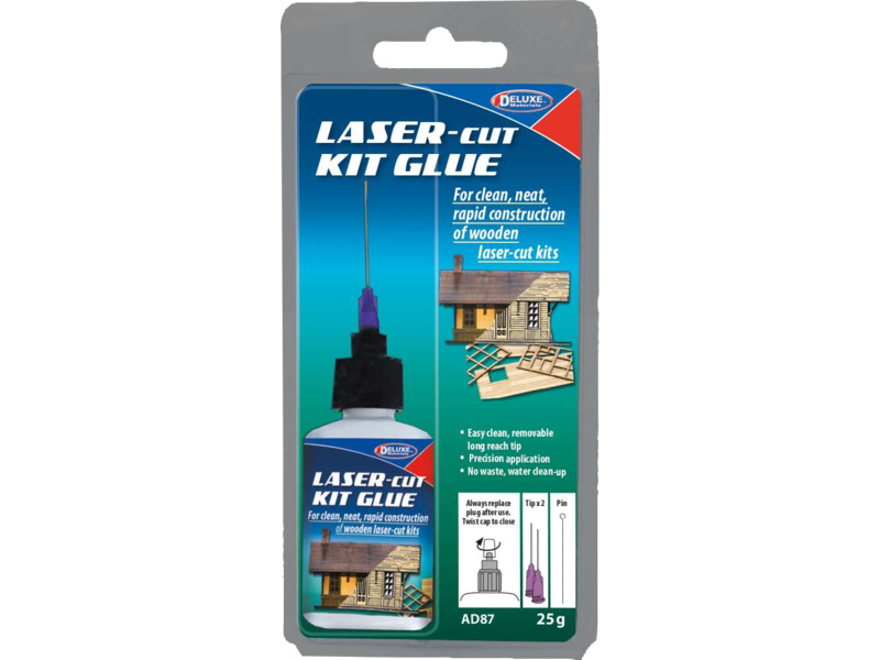 Lepidlo lepí bez zápachu, nezaschnuté lepidlo lze smýt vodou. Lepidlo Laser-Cut má spíše řidší konzistenci, takže do vnitřních částí lepených spojů. V případě lepení balzy nebo topolové překližky se lepidlo vsákne do dřeva a tím celý spoj dále zpevní. Výsledný spoj je čirý.