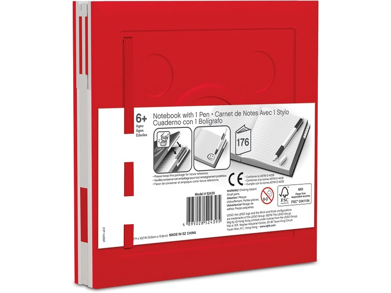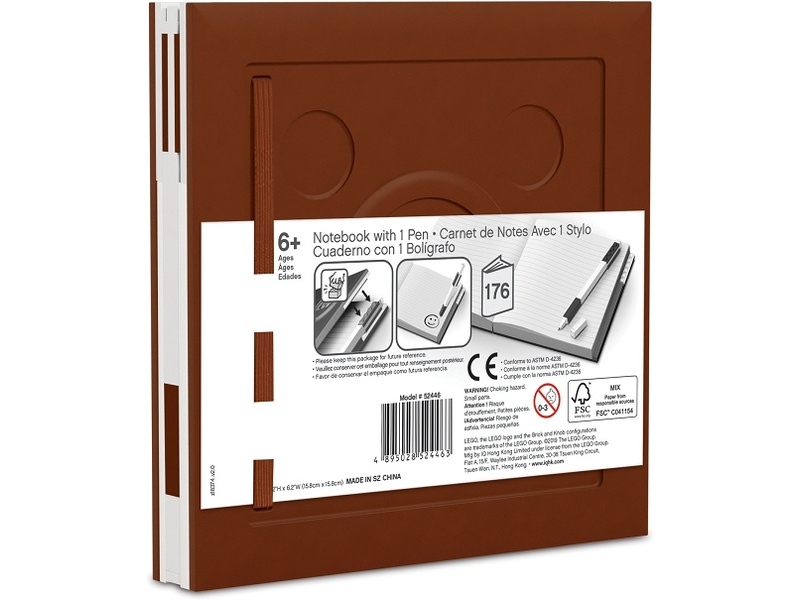 Nový LEGO zápisník - originální ze všech stran. Nechte se okouzlit reliéfní grafikou LEGO kostičky na přední i zadní straně zápisníku, přední i zadní předsádkou s retro designem a unikátním zavíracím mechanismem obsahujícím LEGO gelové pero. Výběr z mnoha barev, barva zápisníku je totožná s přiloženým gelovým perem (tloušťka 0,7 mm). Díky povedenému designu zápisník ocení nejen fanoušci legendární značky LEGO.