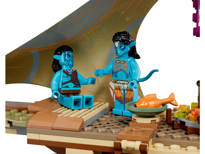 - Co se ukrývá v krabici? – Součástí je domovská vesnice kmene Metkayina se všemi detaily z filmu Avatar: Cesta vody, a k tomu navíc kanoe, prostředí pandorského útesu a minifigurky Neytiri, Kiri, Ronal a Tonowariho