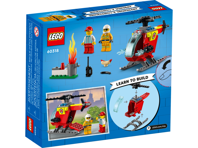 - Co se ukrývá v krabici? – Vše, co potřebujete k sestavení hasičského vrtulníku, a k tomu navíc minifigurky hasiče a prodavače, popelnice s dílky LEGO® v podobě plamenů a zábavné doplňky, včetně spáleného hotdogu