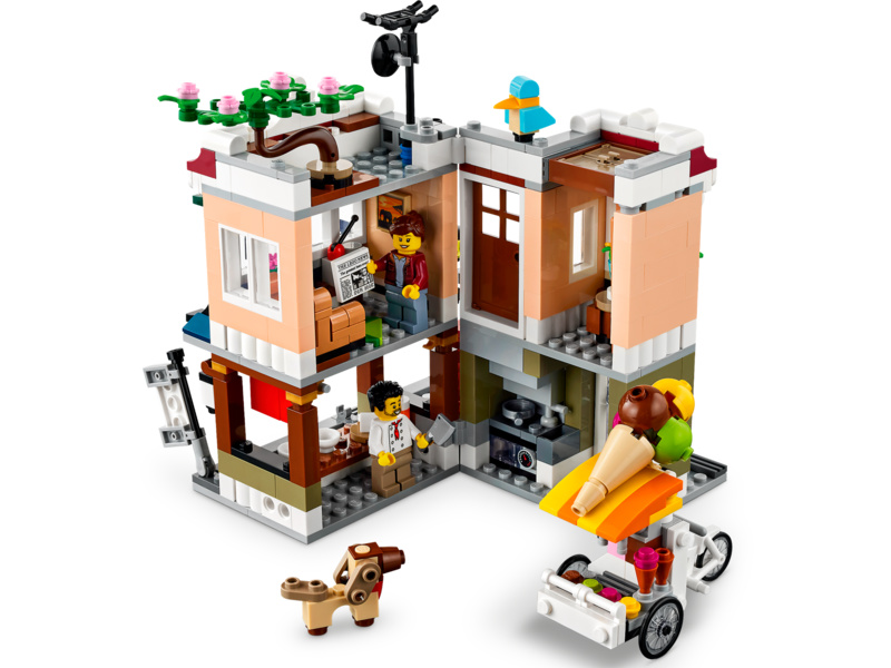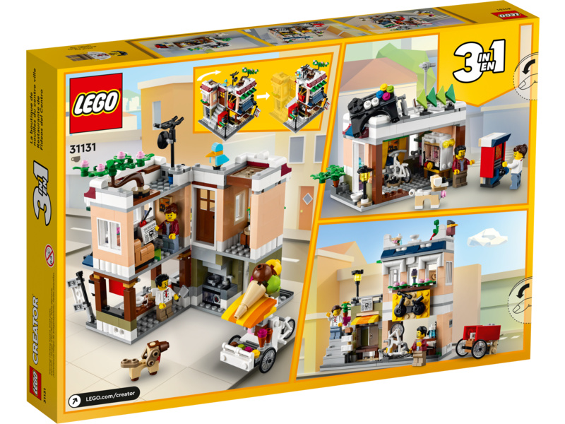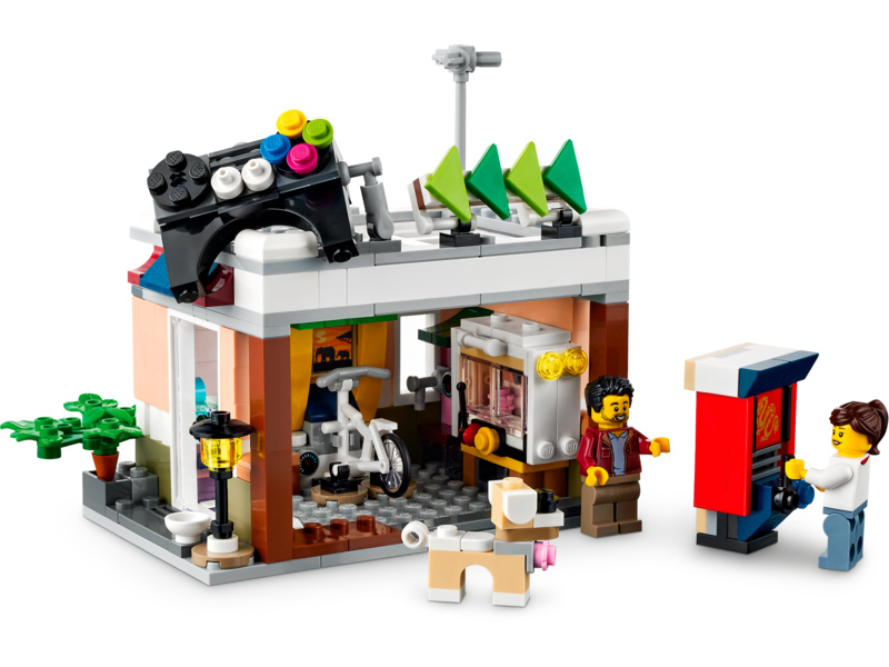 Se stavebnicemi LEGO Creator 3 v 1 si děti mohou vybrat, který ze 3 modelů si postaví. Nabízí se dvoupodlažní budova v centru města s bistrem a bytem se střešní terasou, prodejna kol s novinovým stánkem a uměleckým studiem, nebo herna se 3 videoherními automaty. Případně si mohou z 569 kostek postavit cokoliv jiného, co je napadne.