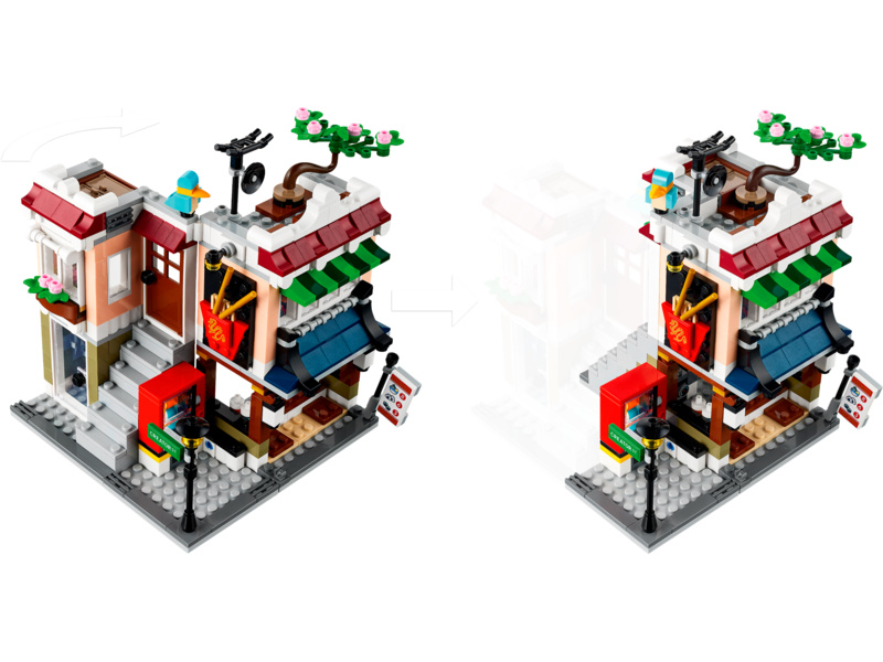Fanoušci LEGO® starší 8 let se s akční stavebnicí LEGO Creator 3 v 1 Bistro s nudlemi v centru města mohou těšit na pořádnou porci zábavných příběhů.
