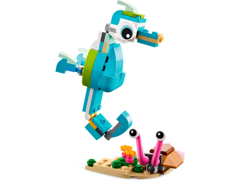 - Neomezené herní možnosti – fanoušci kostek LEGO® si mohou vybrat ze 3 různých modelů ze dna oceánu: delfína se želvou, mořského koníka s mořským šnekem nebo rybku s krabem