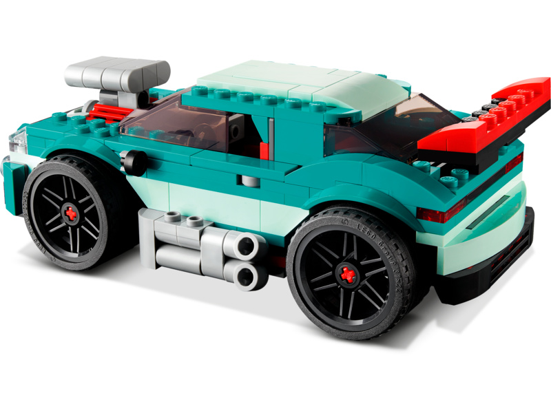 Stavebnice LEGO Creator 3 v 1 dětem přináší 3 různé stavitelské a herní zážitky. Postaví si závoďák, který pak mohou přestavět na formuli, nebo hot rod v červené a tmavě modrozelené barvě. Samozřejmě mohou nastartovat motor představivosti a vytvořit si vlastní výkonný vůz.