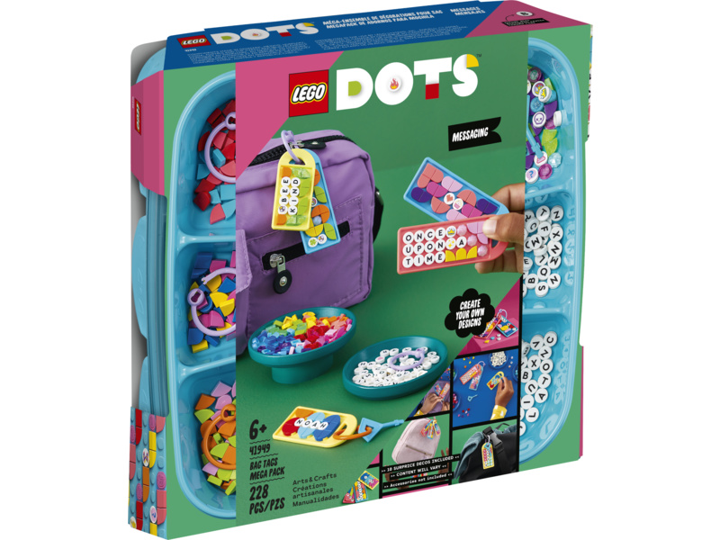 - Navrhování, nošení, sdílení – udělejte radost kreativním duším sadou LEGO® DOTS Mega balení ozdob na tašku – zábavné vzkazy (41949). Kreativní zábava začíná hned po rozbalení