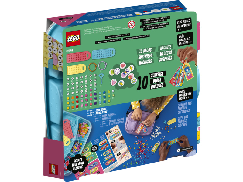 - Extra možnosti při designování – tato tvůrčí sada přináší nápadité a originální aktivity. Kromě toho mohou děti své výtvory rozšířit pomocí DOTS doplňků z 6. série LEGO® DOTS (prodávají se samostatně)