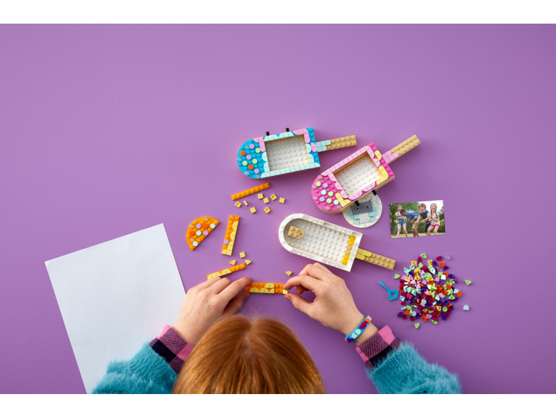 Nadchněte dítě, které zbožňuje umění a ruční práce, stavebnicí Rámečky a náramek – nanuky od LEGO® DOTS. Tato cool stavebnice zaujme 3 rámečky na fotografie v podobě nanuků.