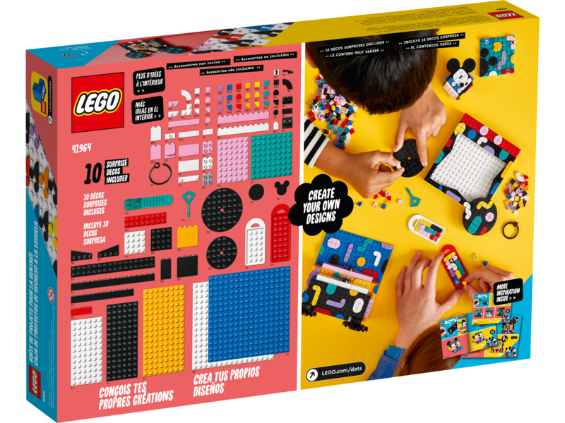- Tvořte, zdobte, používejte – Ohromte všechny děti, které chtějí udávat trendy nebo zbožňují umění a tvoření školním boxíkem Myšák Mickey a Myška Minnie (41964) od LEGO® DOTS ǀ Disney. Kreativní zábava začíná hned po otevření krabice