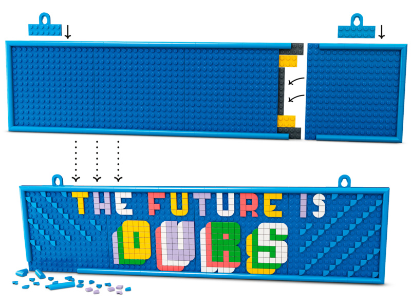 Sada LEGO® DOTS Velká nástěnka! Malým kreativcům ve věku od 8 let nabízí spoustu tvůrčích možností ke skládání vlastních vzkazů a zdobení nástěnky podle aktuálních pocitů, nálad nebo zálib.