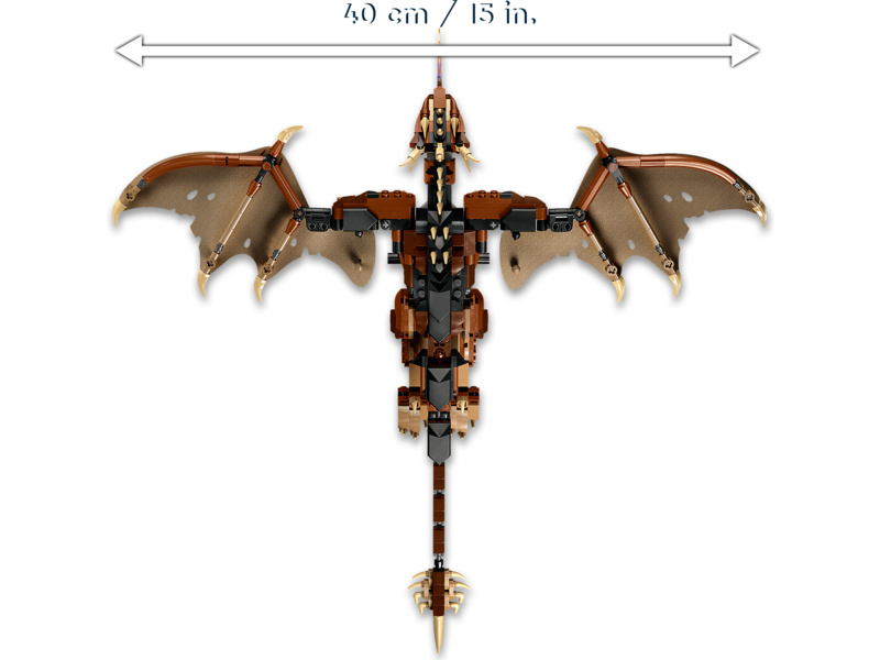 Stavebnice LEGO® Harry Potter™ Maďarský trnoocasý drak (76406) umožňuje fanouškům filmů z prostředí světa čar a kouzel postavit a vystavit si model jednoho z nejobávanějších draků v historii kouzel. Tato replika legendárního oheň plivajícího stvoření je určena čarodějkám, kouzelníkům a mudlům starším 10 let.