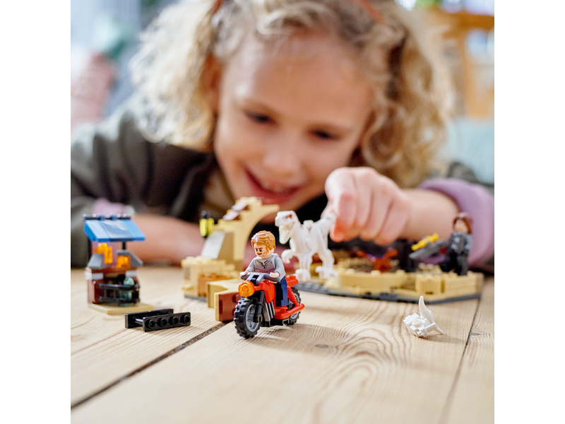 Stavebnice Atrociraptor: honička na motorce (76945) dá fanouškům jedinečnou možnost přehrávat si vzrušující dobrodružství z filmového trháku Jurský svět Nadvláda. Stavebnice obsahuje polohovatelnou figurku atrociraptora, motorku a sestavitelný model tržiště s prorazitelnou zdí a otočným bojištěm pro dinosaury. Jedná se o skvělý dárek nebo odměnu pro děti ve věku od 6 let.