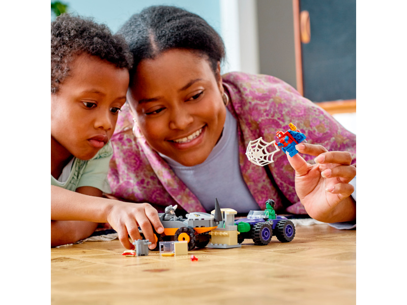- Skvělý dárek pro malé milovníky vozidel – Stavebnice Hulk vs. Rhino – souboj džípů (10782) z řady LEGO® Marvel Spidey And His Amazing Friends přináší 2 vozidla LEGO, 3 minifiurky, Spider-Manův jetpack a bankovní trezor
