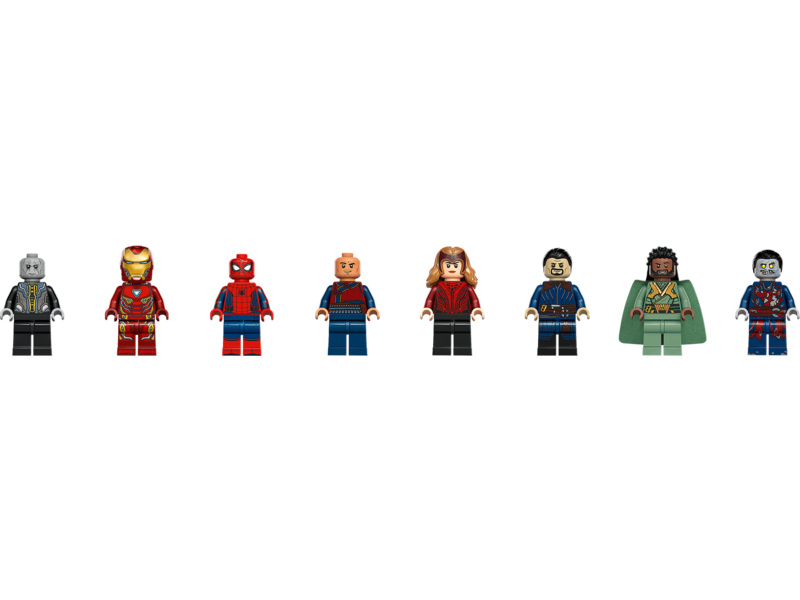 - Ikonické postavy od Marvelu – Stavebnice obsahuje minifigurky Doktora Strange, Wonga, Iron Mana, Spider-Mana, Ebonyho Mawa, mistra Morda, zlého Strange, mrtvého Strange a Scarlet Witch