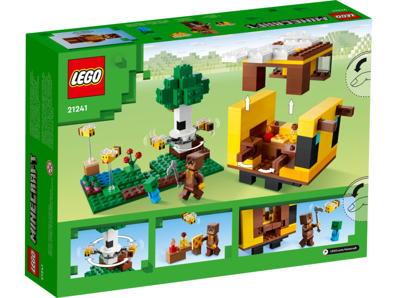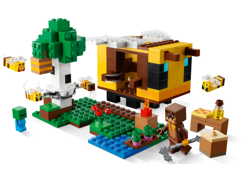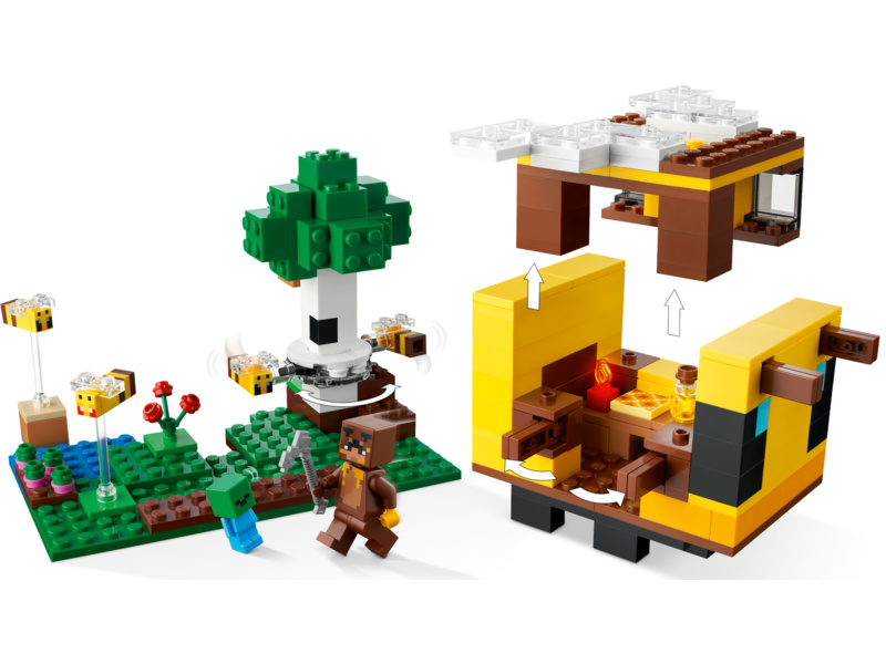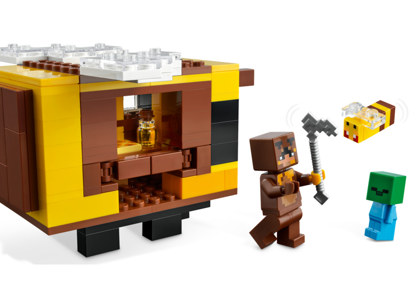 Hráči mohou zapojit své tvůrčí dovednosti z prostředí Minecraft a postavit domek ve tvaru včely. Odnímatelná střecha poskytuje snadný přístup k interiéru. Venku lze sebrat plástev z úlu, pěstovat zemědělské plodiny na farmě a bránit se nepřátelským mobům. Dále zde najdete medového medvěda, malou zombie, 3 včely a 1 rozzlobenou včelu. Mezi funkce ovládané prsty patří 2 včely, které se prohánějí okolo stromu. Pro ještě více digitální zábavy je zde aplikace LEGO Builder, která potěší intuitivními nástroji přibližování a otáčení, aby si děti mohly model vizualizovat během stavění.