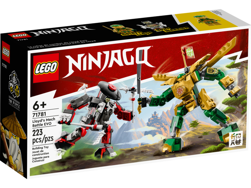Děti od 6 let si zamilují poznávat fantastický akční svět LEGO® NINJAGO® prostřednictvím stavění a hraní bitev se stavebnicí Lloyd a bitva robotů EVO (71781). Ve stavebnici jsou 2 pohybliví roboti s parádními zbraněmi, takže si děti budou moct přehrávat napínavé souboje. Děti mohou navíc Lloydova robota vylepšit s pomocí zlatého brnění a křídel, aby zvítězil.
