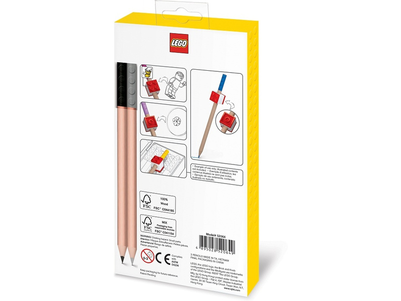 LEGO barevné pastelky, mix různých barev. Balení obsahuje 12 ks dřevěných pastelek a dva barevné klipy ve tvaru LEGO destičky pro uchycení pastelky např. do LEGO pouzdra nebo na přicvaknutí oblíbené minifigurky jako doplňku.