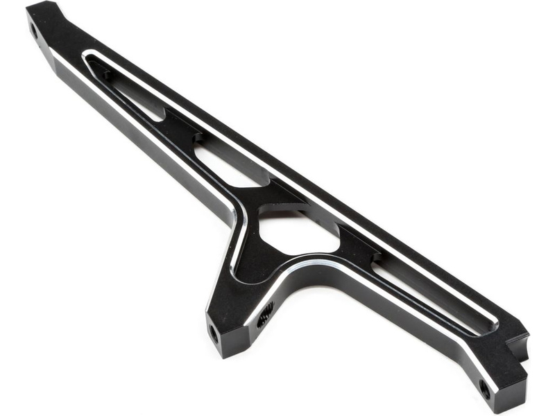Náhradní díl pro RC modely aut Losi MTXL: příčka šasi přední černá hliník.