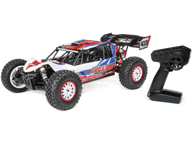 RC model auta na dálkové ovládání Losi Tenacity Desert Buggy Pro V2 s klecí karosérie a kokpitem s posádkou a náhonem 4WD jede až 80 km/hod! Integrovaná stabilizace jízdy AVC, technologie Smart, výkonný střídavý motor pro LiPol 2S-3S, vysílač Spektrum DX3, osvětlení.