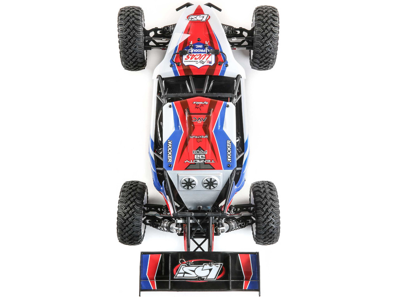 RC model auta na dálkové ovládání Losi Tenacity Desert Buggy Pro s klecí karosérie a kokpitem s posádkou a náhonem 4WD jede až 80 km/hod! Integrovaná stabilizace jízdy AVC, technologie Smart, výkonný střídavý motor pro LiPol 2S-3S, vysílač Spektrum DX3, osvětlení.
