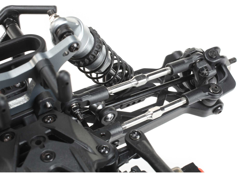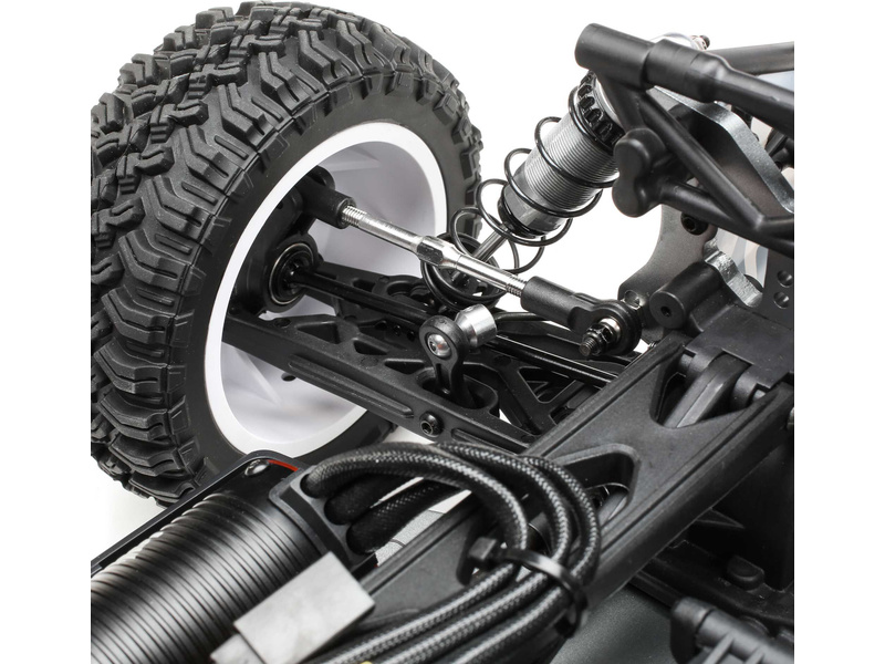 TENACITY DB Pro je postaven v metrické soustavě a obsahuje hliníkové prvky, které konkurence prodává jako volitelné součásti. RC model auta Losi Tenacity-DB Pro je vybaven všemi nejnovějšími technologickými vychytávkami, včetně střídavého regulátoru Spektrum™ Smart 130A BL a střídavého motoru Spektrum Firma® 4-P 3150KV 550, který vám umožní dosáhnout pomocí 3-článkové LiPo baterie, rychlost až 80 km/hod. Regulátor je samozřejmě voděodolný, plně programovatelný a je dodáván s kabelem a konektorem IC5™. V balení je vysílač Spektrum DX3 DSMR, přijímač Spektrum AVC® s prioritou řízení, nainstalovány jsou pneumatiky Falken Wildpeak MT a disky Method. RC model auta Losi Tenacity-DB Pro je sestaven a připraven k jízdě