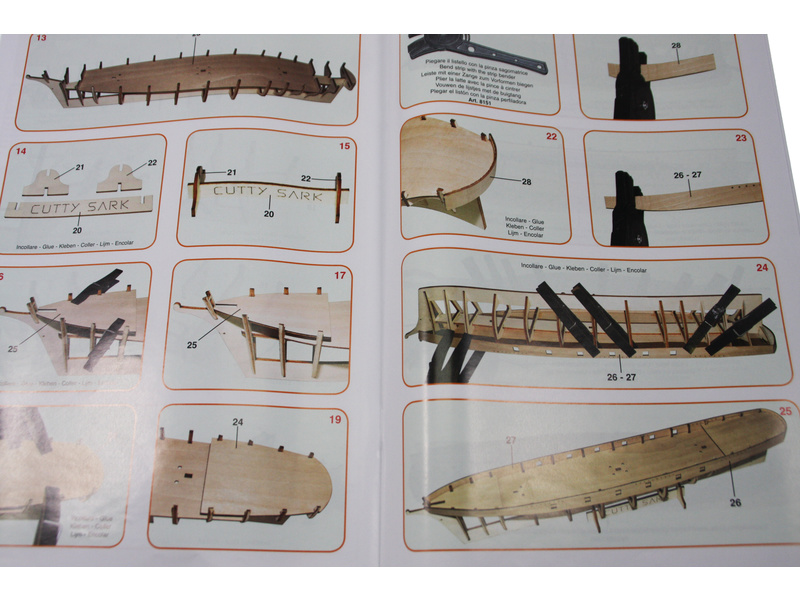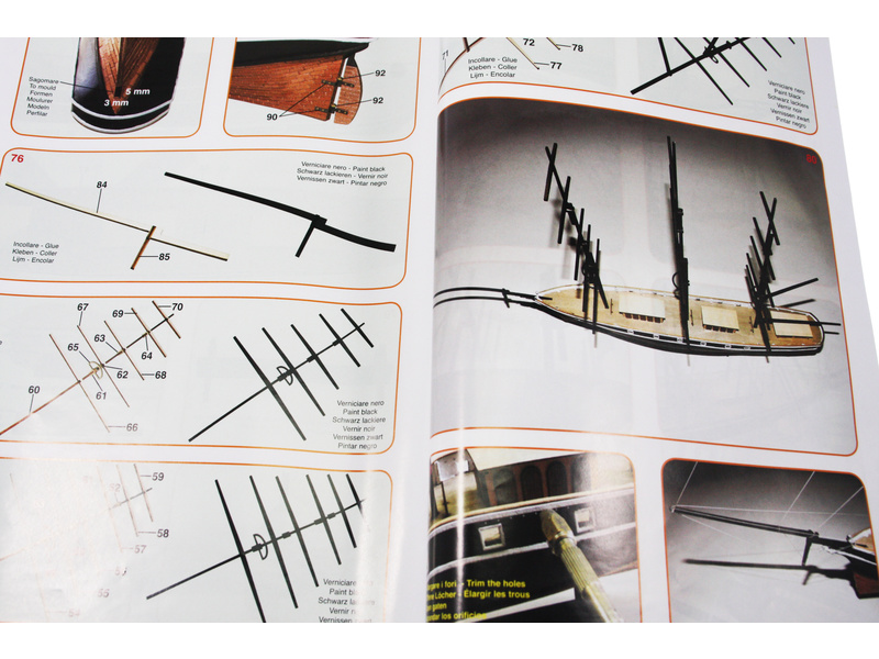 Set obsahuje kompletní sadu výkresové dokumentace modelu v měřítku 1:1 s obrázky jednotlivých detailů. Na výkrese jsou v měřítku nakresleny montážní sestavy, jejich kompletace a to včetně stěžňů a ráhen a způsob vázání lanoví. Vícejazyčný postup stavby rámcově upravuje logické sestavení jednotlivých komponentů.