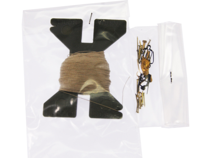 Balení obsahuje překližkové díly, dřevěné lišty, provázek na lana, drobné díly, stojánek, výkresy a návod ke stavbě.