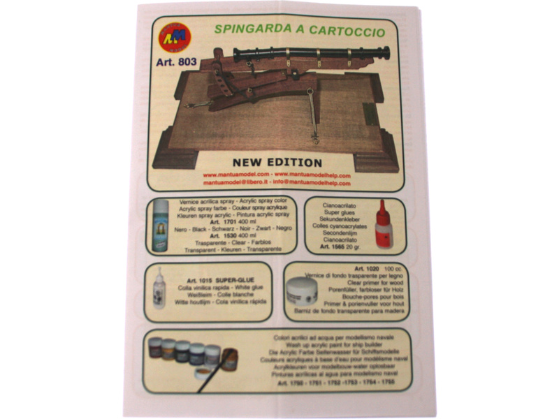 Všechny modely historických zbraní Mantua jsou vybaveny kvalitním tvrdým dřevem, doplněné kovovým, například mosazným kováním. Dřevo je řezáno laserem pro přesnou montáž. Manuál je s kompletními ilustracemi. Sortiment historický modelů zbraní Mantua obsahuje děla, hmoždíře, katapulty, bojové vozy, a mnoho dalšího, kde si vybere opravdu každý.