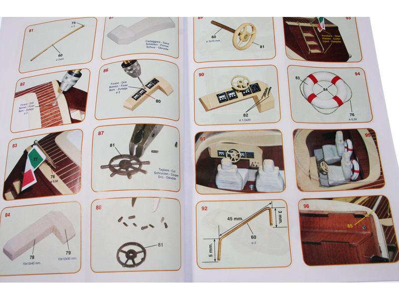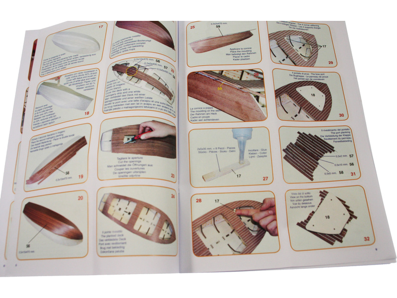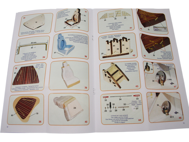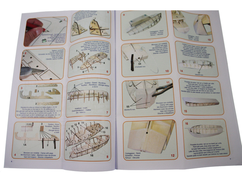 Set obsahuje kompletní sadu výkresové dokumentace modelu v měřítku 1:1 s obrázky jednotlivých detailů. Na výkrese jsou v měřítku nakresleny montážní sestavy, jejich kompletace a to včetně stěžňů a ráhen a způsob vázání lanoví. Vícejazyčný postup stavby rámcově upravuje logické sestavení jednotlivých komponentů.
