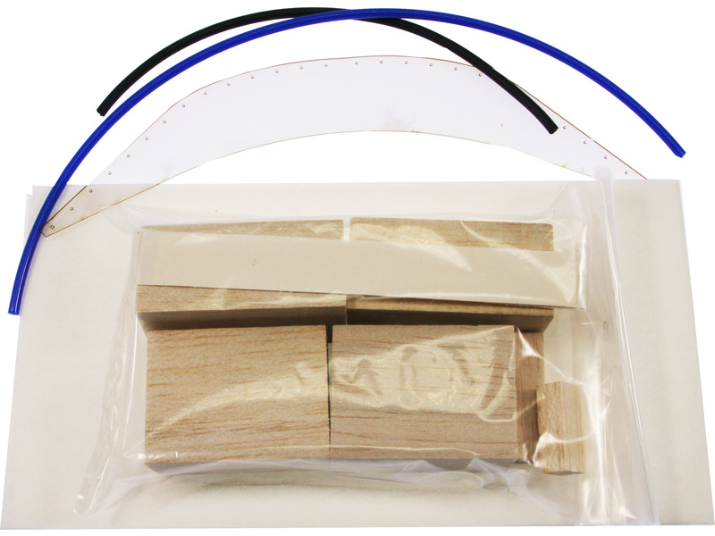 Balení obsahuje sadu překližkových dílů, sadu dřevěných lišt o různém průřezu, blistr s drobnými díly, sadu výkresů a vícejazyčný manuál.