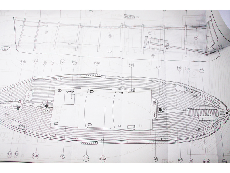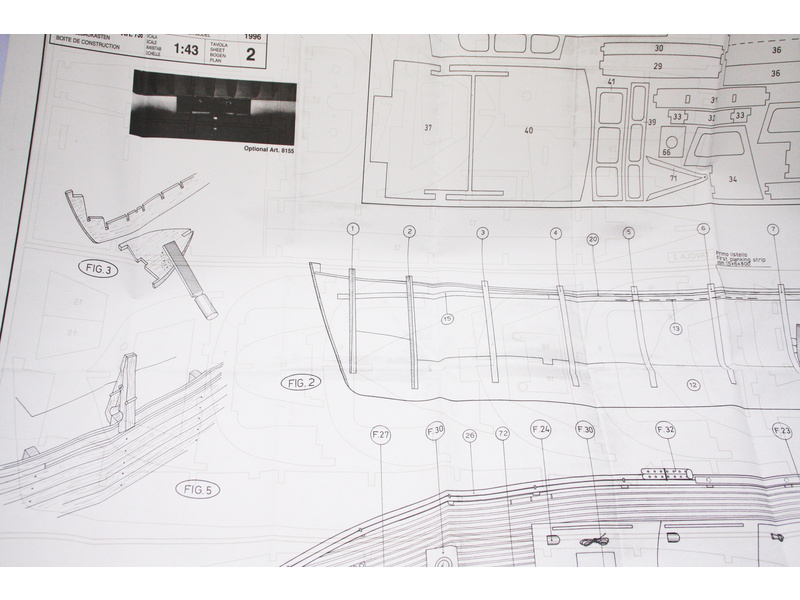 Set obsahuje kompletní sadu výkresové dokumentace modelu v měřítku 1:1 s obrázky jednotlivých detailů. Na výkrese jsou v měřítku nakresleny montážní sestavy, jejich kompletace a to včetně stěžňů a ráhen a způsob vázání lanoví. Vícejazyčný postup stavby rámcově upravuje logické sestavení jednotlivých komponentů.