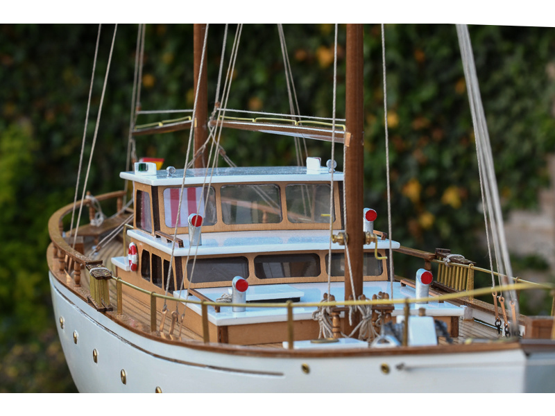 Stavebnice modelu lodi Mantua Motorová jachta Bruma v měřítku 1:43 a délce 860mm. Dřevěný model s klasickou stavbou můžete mít jako statickou maketu nebo funkční, poháněnou volitelným elektromotorem. Obrazový návod krok za krokem, sada dřevěných a kovových dílů.