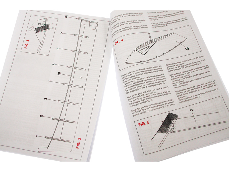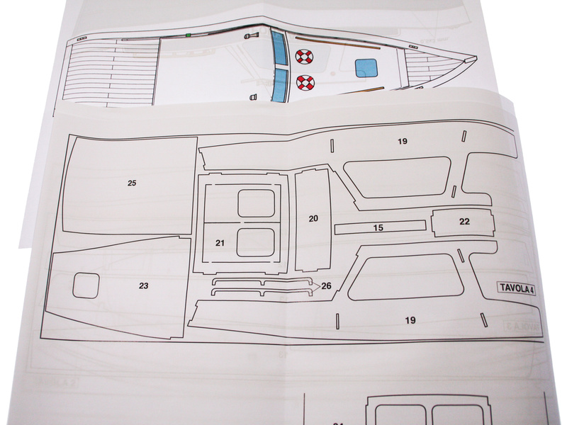 Set obsahuje kompletní sadu výkresové dokumentace modelu v měřítku 1:1 s obrázky jednotlivých detailů. Na výkrese jsou v měřítku nakresleny montážní sestavy, jejich kompletace a to včetně stěžňů a ráhen a způsob vázání lanoví. Vícejazyčný postup stavby rámcově upravuje logické sestavení jednotlivých komponentů.