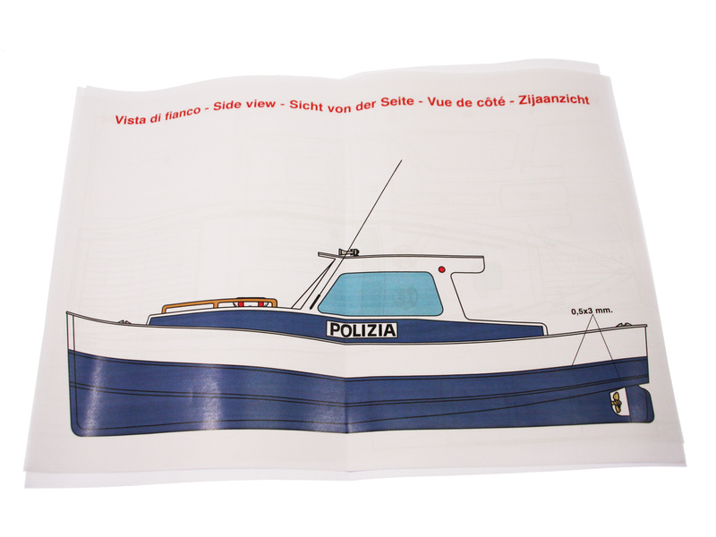 Stavebnice neplovoucího dřevěného modelu lodi, Mantua Model Policejní člun v měřítku 1:35 a délce 400mm. Malý motorový člun v designu italských lodí přístavní policie. Je ideálním pro začínající modeláře, kteří se chtějí zabývat stavbou modelů lodí z dřevěných stavebnic. Stavebnice je plně vybavena přesně lícujícími dřevěnými díly vyřezanými laserem, drobnými díly pro dokončení modelu, stavebních plánů a návodem s výkresy řezů. Součástí je také stojánek lodi.