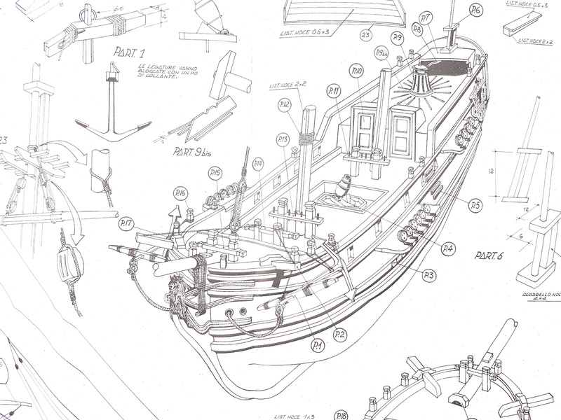 Balení obsahuje laserem řezané dřevěné díly, plaňky, stožáry, vlajku, lanoví, kovové a dřevěné kování a dekorace z mosazi. Stavební plány a vícejazyčný manuál.