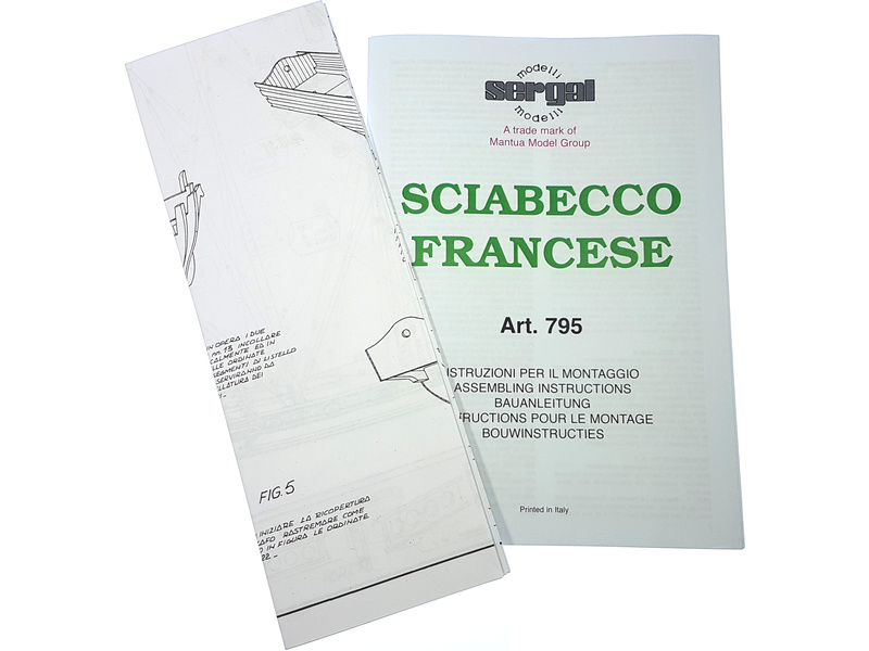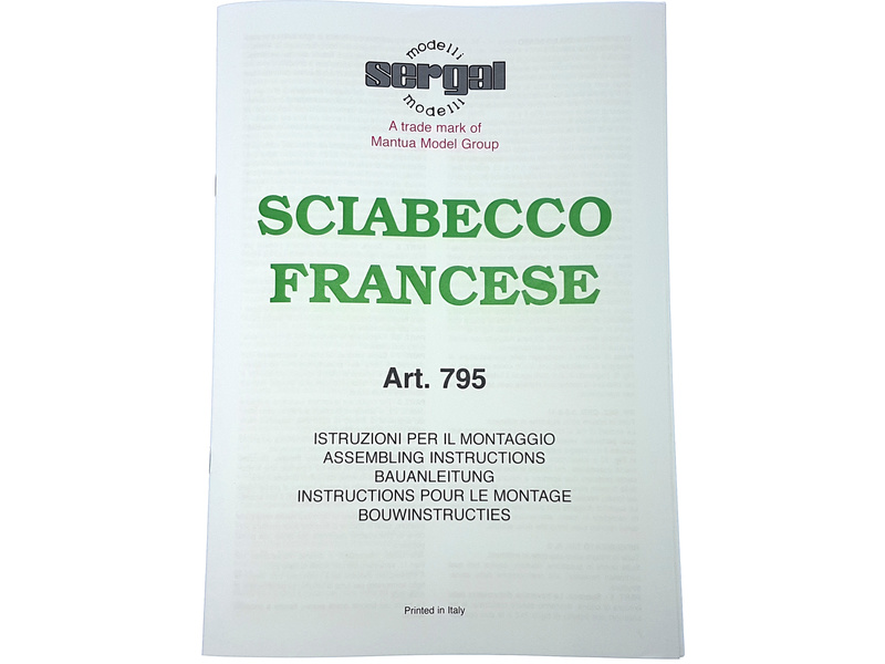 Stavebnice neplovoucího modelu lodi Sciabeggio v měřítku 1:49. Loď byla používána Francouzi ve středozemním moři v boji proti sacárenským pirátům. Kit modelu lodi obsahuje rámovou konstrukci, dvojité plaňkování pro vetší stabilitu a lehčí stavbu. Kování z mosazi. Délka 52 cm. Model je koncipován bez plachet, aby vynikly jednotlivé detailu stěžňů. Jako příslušenství lze k modelu dokoupit sadu plachet.