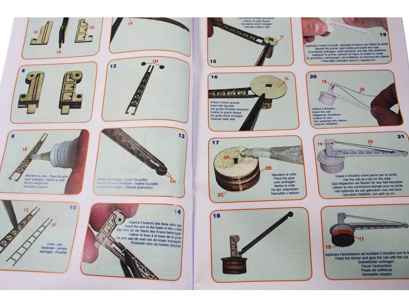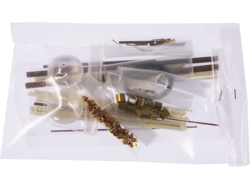 Balení obsahuje sadu překližkových dílů, sadu dřevěných lišt o různém průřezu, sáčky s drobnými díly, díly z mosazi, sadu výkresů a vícejazyčný manuál.