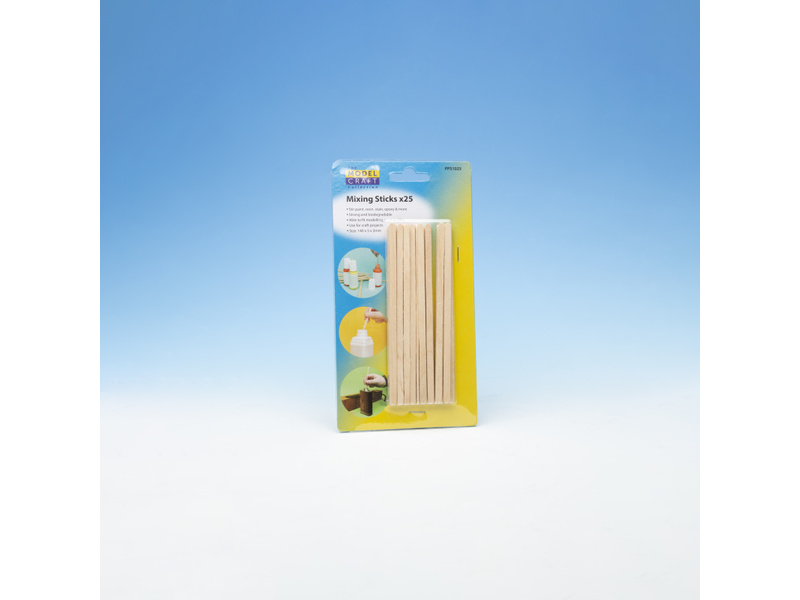 Modelcraft dřívka na míchání barev (25ks) jsou ideální pro míchání barev, pryskyřic, laků, nanášení lepidel apod. Velikost 140 x 5 x 2mm, zaoblené konce, hladký povrch.