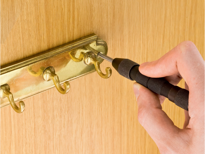 Při vrtání otvorů je důležité označení bodu pro špičku vrtáku, použijte Modelcraft důlčík, se kterým zvládnete práci i jednou rukou. V důlčíku je pružina, tlak lze měnit otočnou vrchní rýhovanou částí. Celk. délka 140mm, hmotnost 100g.