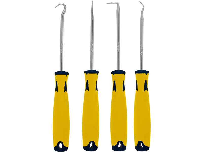 Sada 4 kusů mini háčků Modelcraft z nerezové oceli. Tyto ocelové nástroje umožňují přesné tvarování a rytí na modelech a různých předmětech. Usnadní práci modelářům a řemeslníkům při jemném vyhlazování a nanášení měkkých materiálů a tmelů.