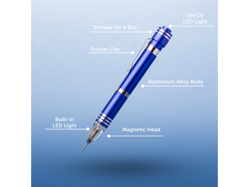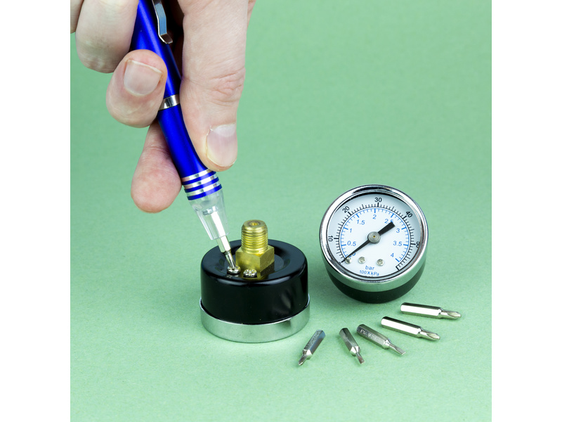 Přesný Modelcraft šroubovák s vyměnnými bity, magnetickým držákem bitů a LED svítilnou je ideální pro detailní práci. Obsahuje 6 bitů, je vybaven 4x AG3 bateriemi k okamžitému použití. Ideální pro práci s elektronikou, modelářství, hobby, šperkažství a pro kutily.