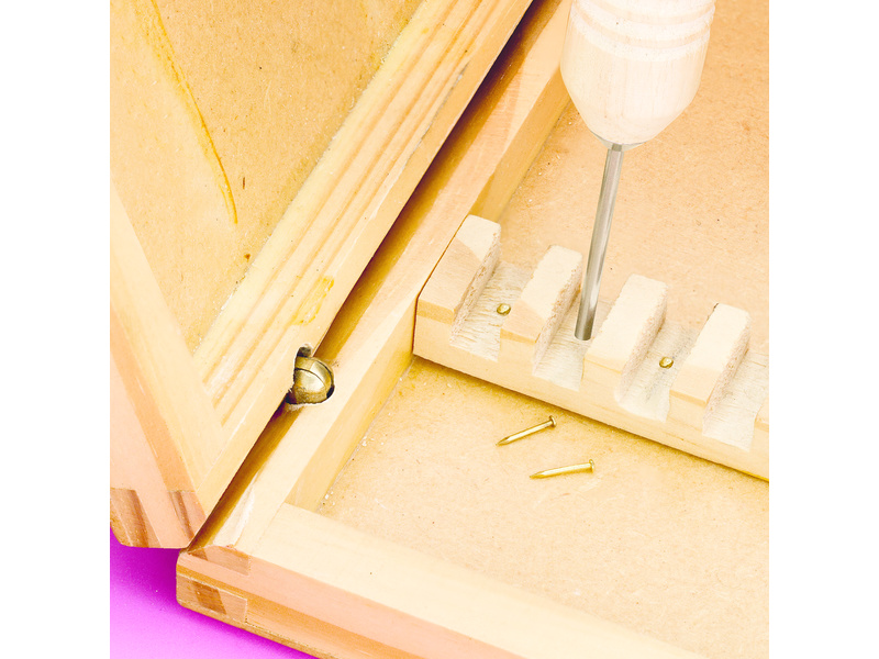 Modelcraft zatloukač hřebíků, v balení jsou mosazné hřebíky 0.5x10mm (100ks). Vhodný všude tam, kde je potřeba mít mini spoje, např. železniční či lodní modeláři, čalounění, dekorace, hobby. Celková délka 150mm, průměr rukojeti 15mm, průměr pro hlavičku 2mm, hmotnost 33g.