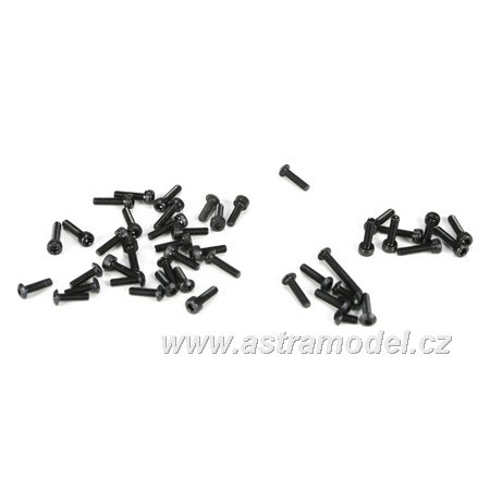 Sada šroubků M3 značky Losi na modely 5ive-T. Balení obsahuje 38 ks - válcová hlava a půlkulatá hlava v různých délkách.