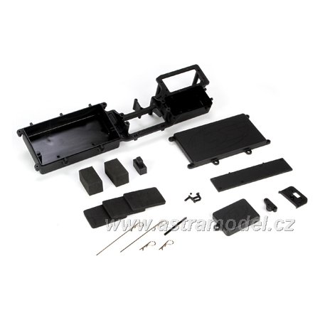 Náhradní díl pro RC modely aut Losi 5ive: krabička RC výbavy s příslušenstvím.