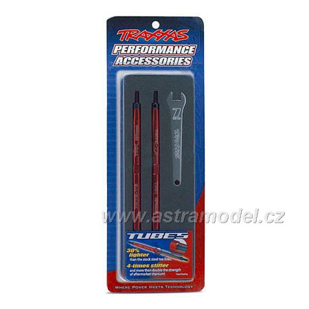 Náhradní díl pro RC modely aut Traxxas E-Maxx: spojovačka 124mm hliníková červená (2 ks).
